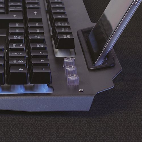 O teclado Gamer KG-200 e a opcao ideal para tornar sua experiencia de jogo ainda mais completa! Possui design diferenciado com suporte para smartphone e apoio ergonômico para os pulsos. Alem de iluminação multicores, 12 teclas de acesso rápido as funções multimídia e 19 teclas anti-ghosting.